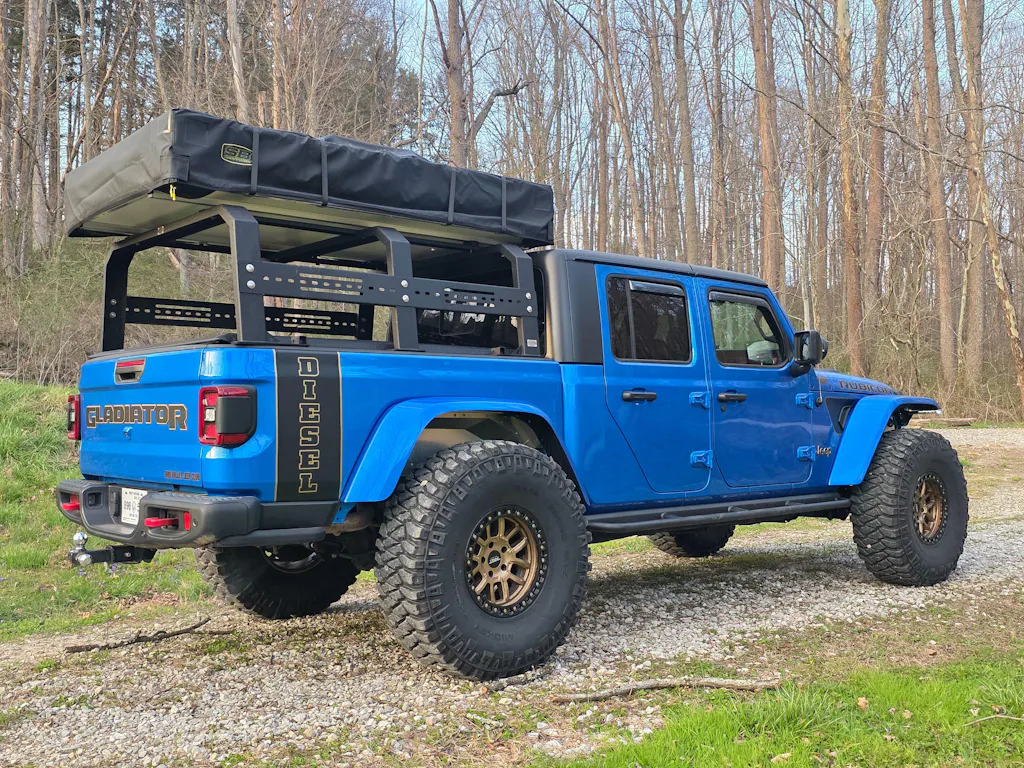 Pushing the boundaries of what's possible, our Jeep Gladiator Bed Rack shifts your rig from just another truck, to a MIL-SPEC beast ready to take on everything from grocery runs to muddy, rocky off-roading. Whether it's the heaviest tools, the most rugged coolers, or your comprehensive camping gear, bring it on; our Truck Bed Rack features a carrying capacity of up to 500 pounds, and the adjustable rails mean adaptability and flexibility.