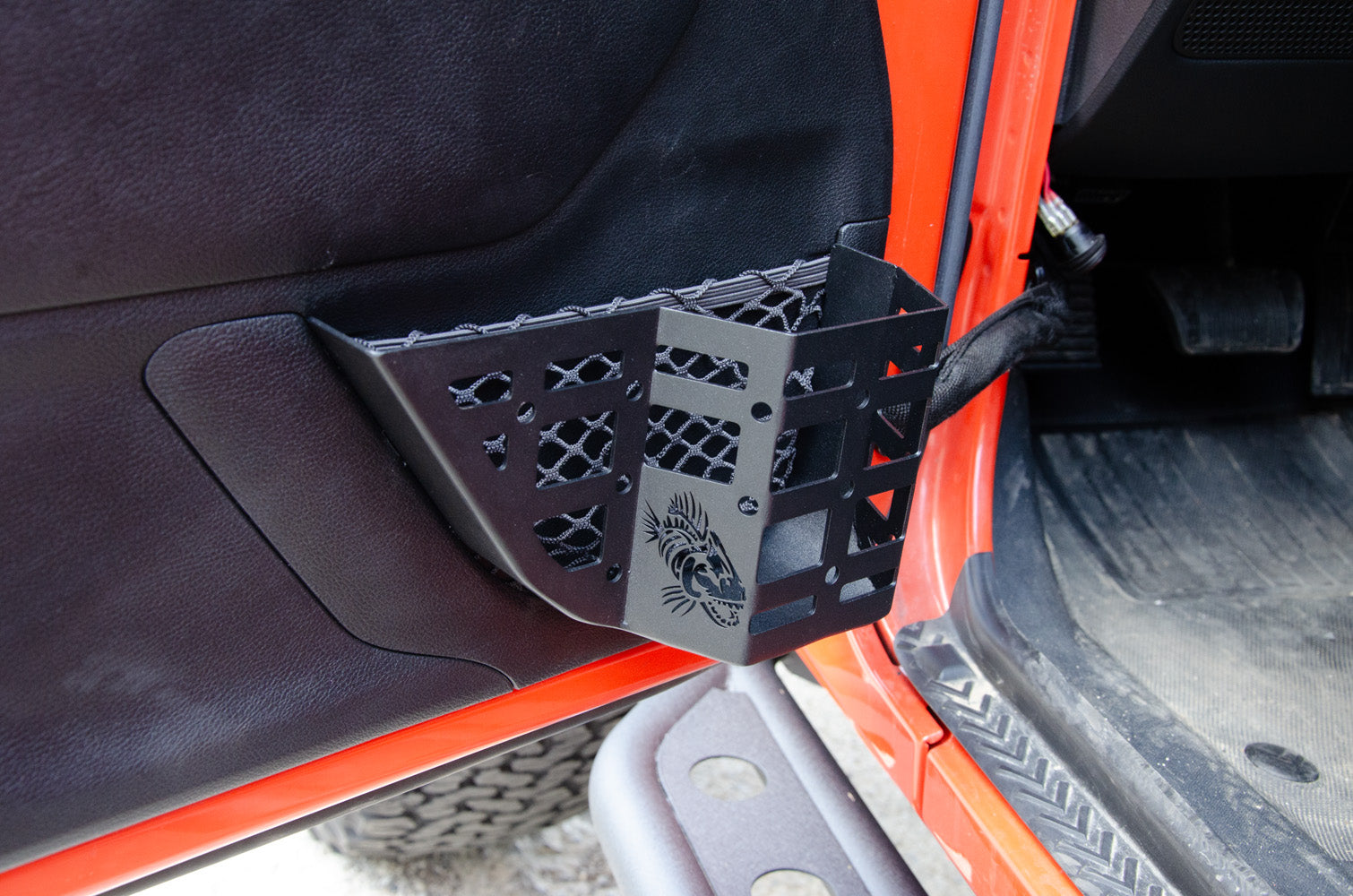 Installation is a breeze—no need to remove the door panel. The snap-in design with locking tabs ensures a secure fit while allowing for easy removal if needed. These MOLLE panels seamlessly complement your Jeep’s interior with their sleek, functional design and durable textured black powder coat finish. Plus, unlike the competition, you can keep the factory netting if preferred.
