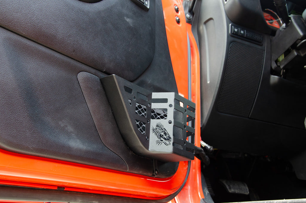 Upgrade your Jeep JK or JKU with our MOLLE panel door pockets, designed to replace the flimsy, sagging OEM door nets. The front panel's outward design creates extra space for essentials like water bottles or similar-sized items, while the MOLLE panel structure offers versatile mounting options for tools, pocket knives, holsters, and other daily gear.